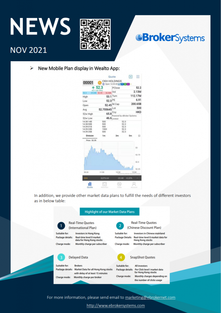 Real-time HK Stock streaming price (L1) on our Wealto Mobile App at HK$68 per month only! By eBroker2021-11-302025-03-11Newsletter